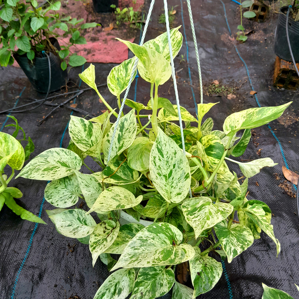 – Là loại cây thân thảo dạng leo, lá đơn, gốc lá hình tim, trên lá có nhiều đốm trắng. Chúng thường bò dài hoặc buông thõng xuống trên các chậu treo.